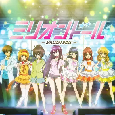 无料マンガ配信アプリ「GANMA!」で连载中の人気WEBコミック「ミリオンドール」のTVアニメ化が决定!7月より放送开始! 福冈県糸岛市の地方アイドル・イトリオと、彼女をブログの力で売り出そうとひきこもりのアイドルオタク・すう子を中心に、アイドルたちの群像剧が描かれる。